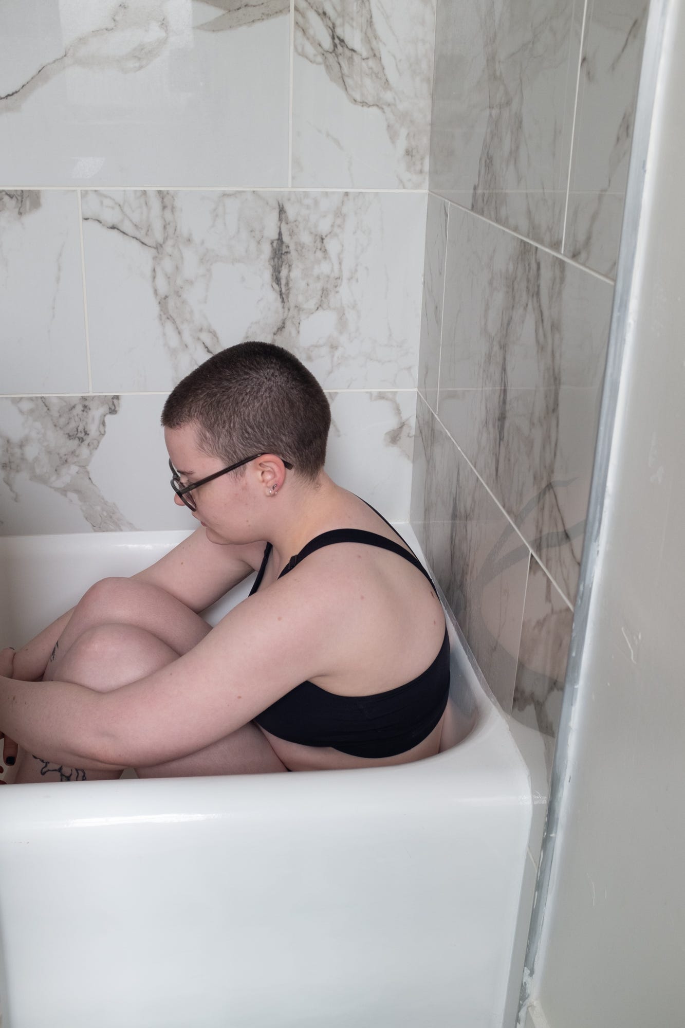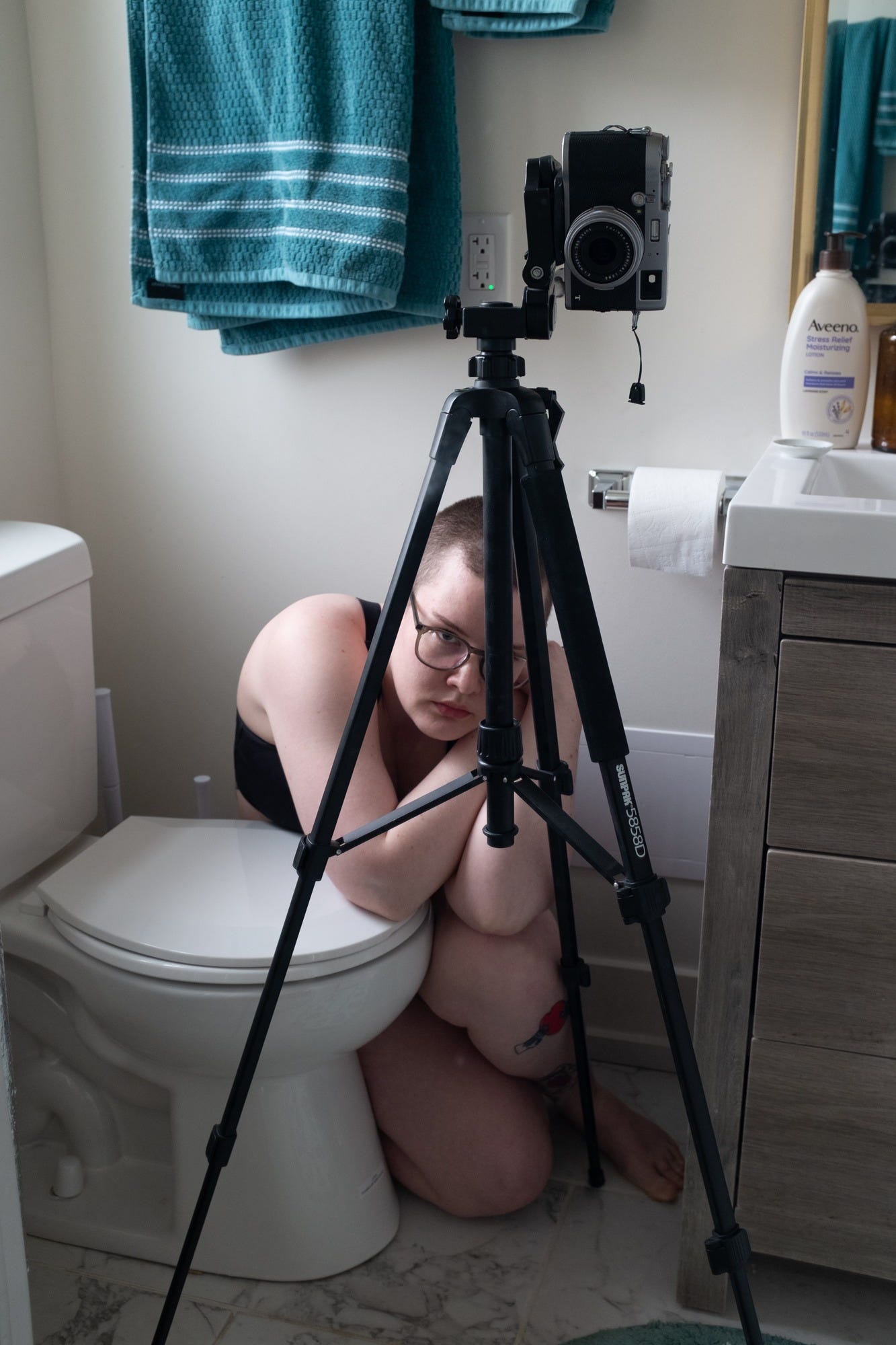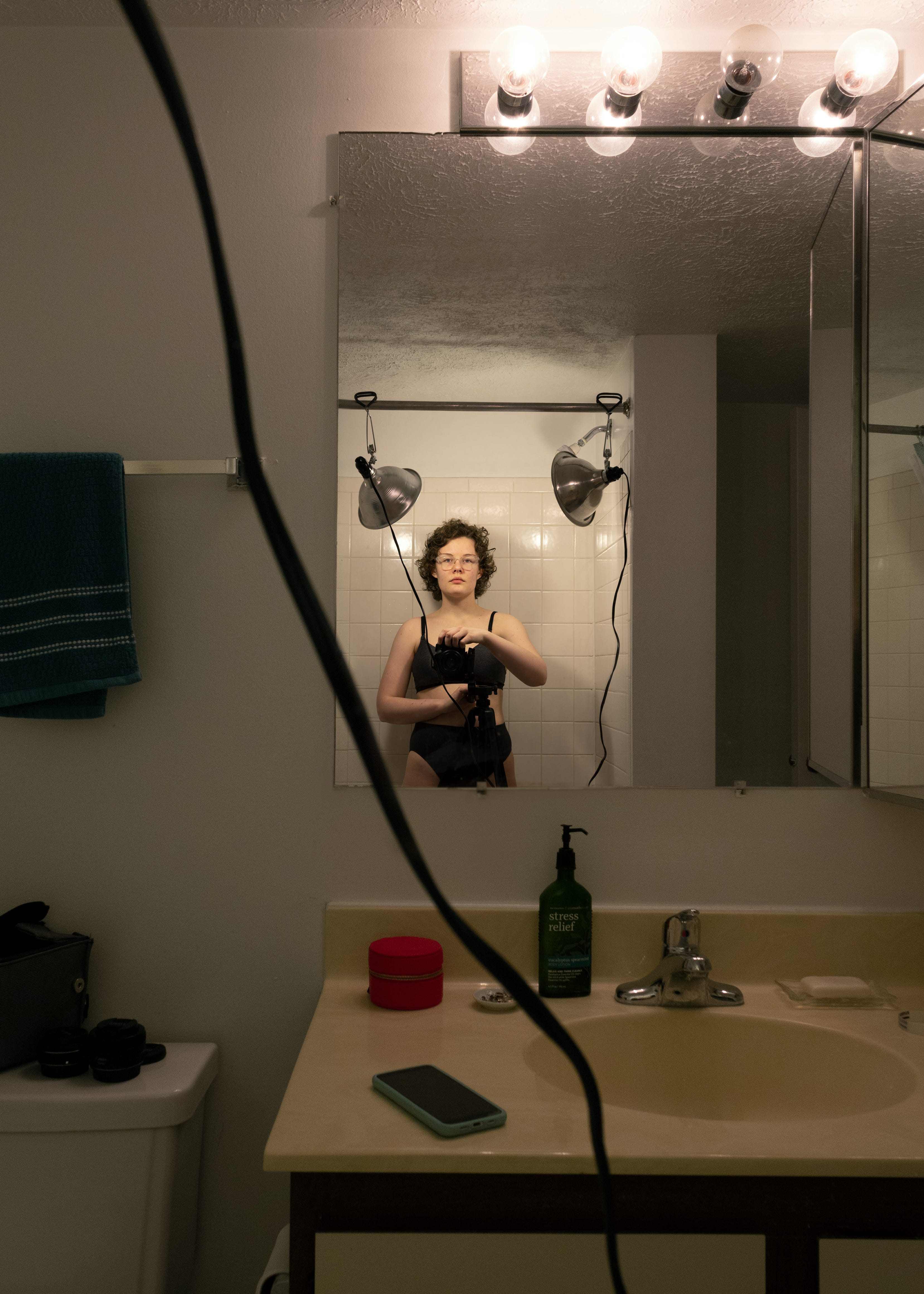Recently, I had this image in my mind from 2019 or so—made when I was still trying to figure out what I wanted to make as a photographer. At the time, I was almost exclusively making photos within my house, most often in the dirty, landlord special bathroom in my shitty college apartment. I had so much fun setting up lighting and playing in that small, dingy space. (Those of you dear readers who were in class with me at the time will remember such gems as “bathroom selfie” and “Is this what you wanted?” Lucky you.)